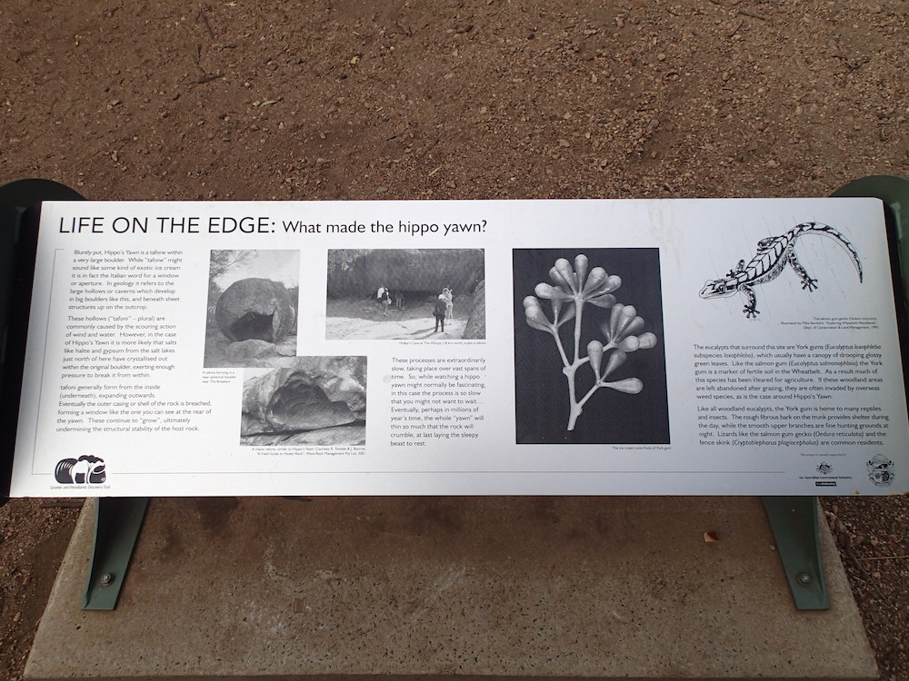 Next morning, after a tour of the site and a chat with the Shire Ranger, we headed into Hyden to refuel and visit Wave Rock and Hippos Yawn.