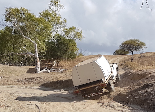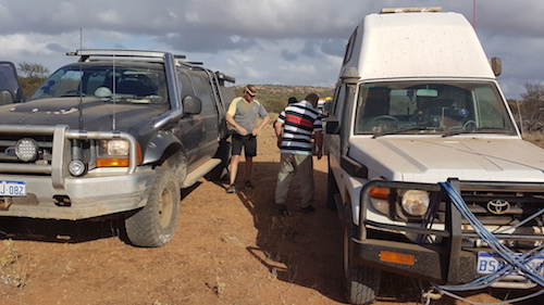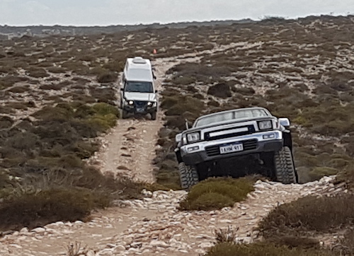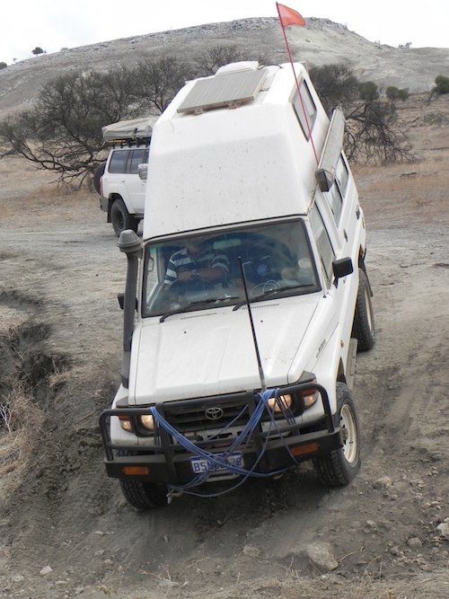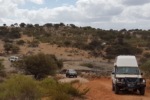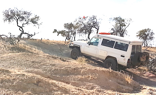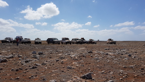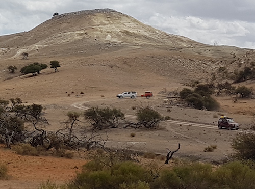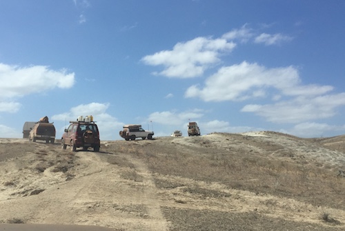 The first challenge on the track north was a fence blocking the way.  On closer inspection it was clear that it was part of a goat trap.  We had passed the detour around it so it initially presented a challenge.  Those further back in the convoy located the detour and we were back on track.