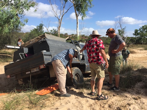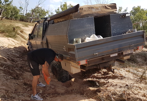 On the way back out to the track north the F250 got a puncture.  While Matt changed the wheel those at the front of the convoy took the opportunity to collect wood – it being a safe bet that there would be no wood at our beachside camp.
