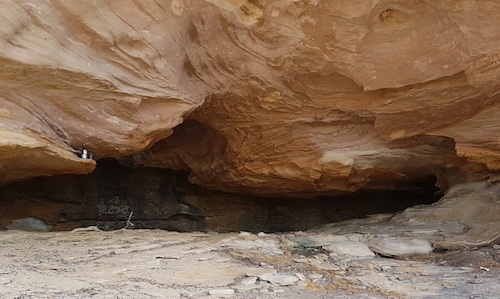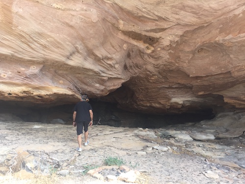 The track into our planned overnight stop at a cave was narrow and overgrown.  We were way ahead of time so this became the lunch stop instead of the overnight stop.