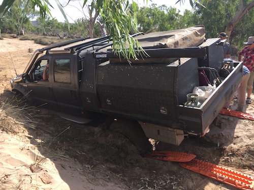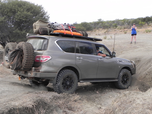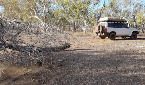 Jon found a felled tree, attached it to his Patrol with a snatch strap, and towed it to camp. What transpired was an hilarious event when the Patrol went one side of a tree and the towed log went the other. Jon’s vehicle came to sudden stop as the rear of the vehicle went skyward.  No damage.