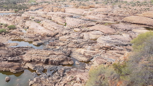 On the way to Murchison House Station I called into Hardabut Rapids.  The turnoff is not marked and the narrow track is closely edged with scratchy vegetation. Close to the river the condition of the track requires one to slow to walking pace but overall it is no great challenge to get to the Rapid.