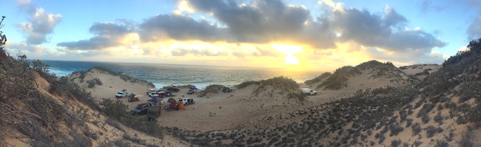 About 12.45 p.m. we found a campsite behind the dunes, out of the wind. The sea was only marginally safe for swimming and, as the wind picked up, the chance of fishing receded. With fishing not being an option there was time to set up a comfortable camp.  It was interesting to see all the various shower set ups.