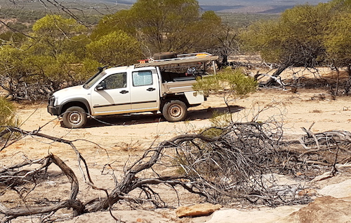 Even a cursory inspection made it clear that we were unable to drive to Mt Curious on the planned Route so we had to back track north. Joe found a shortcut through an overgrown track to the main Mt Curious track.