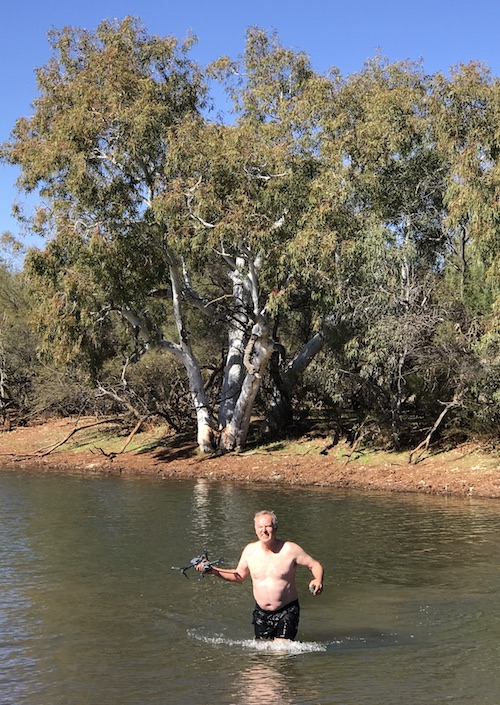Kirk got out his drone for a fly around. A slight misjudgement sent it into the trees on the far side of the pool.