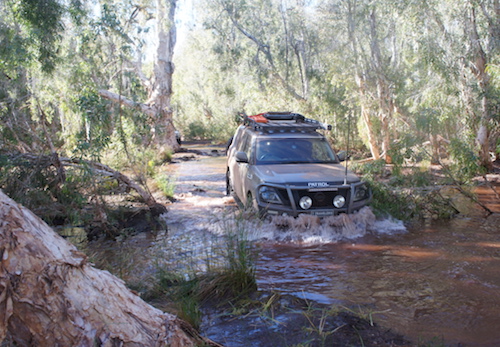 - Kerry crosses the Oakover River in his Nissan Navara.