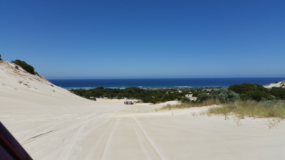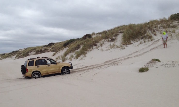The first challenge is to get on top of the dunes. The north face of the dunes is now about eight kilometres from the ocean. It is a spectacular drive to Warren Beach.