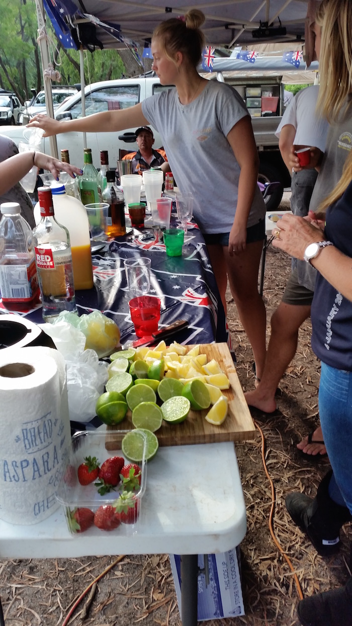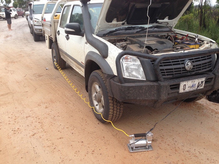 At the rear of the field Dan, Dee and Kim were changing a wheel on Dan’s Prado.