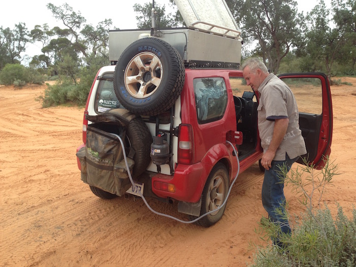 While waiting for the service station to open at Warburton (9.00 a.m.) I changed the fuel filter on the Rodeo. This is better done on a hoist rather than lying on one’s back in the gravel forecourt of an outback servo.