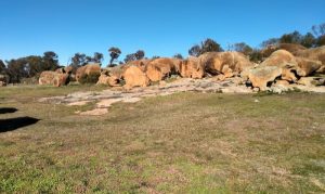 Both Karolin Rocks and Caroling Rocks are in the Shire of Yilgarn, which made coordination of the relocation of the plaque hassle free. However, the plaque will not be relocated to Carolling Rocks. The rock Hunt referred to as Caroling/Karolling in 1865-66 is actually current day Karalee Rock. However, the name Karalee wasn’t used until 1890 when recorded by surveyor N.M. Brazier. Present day Carolling Rocks are 3.4 kilometres south-south-west of Karalee. It is likely that Hunt never visited these rocks.