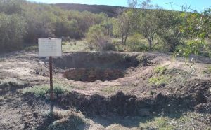 The fence had dropped, the gate wouldn’t open, the well was overgrown with vegetation, trees had fallen on the fence and other vegetation was crowding the area. More importantly three large holes had formed behind the wall of the well and it was unstable and unlikely to withstand many more exceptional rainfall events.