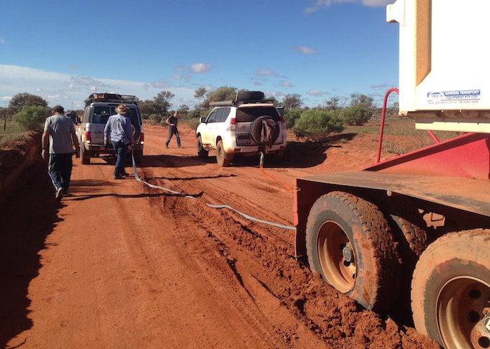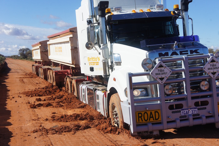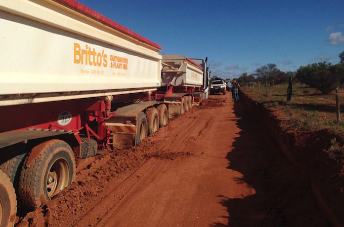 A double road train with 47 tonne of railway ballast – to take out two hundred kilometres further west – was going nowhere.