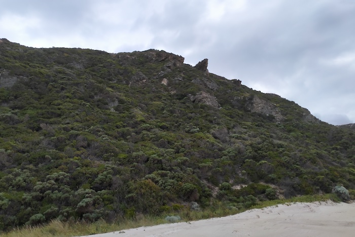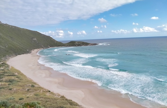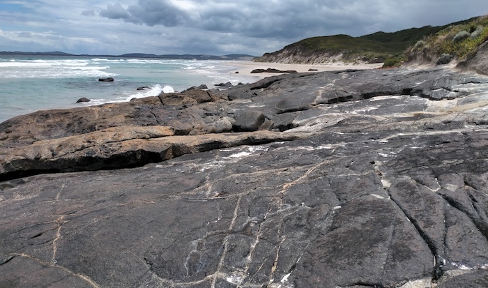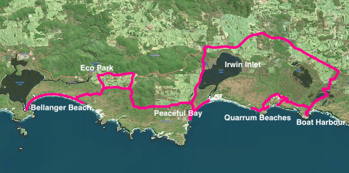 We couldn’t drive to Peaceful Bay (Irwin Inlet outlet notwithstanding) but the day was not yet over. Like so many beaches on the south coast there is only one way in and out. And so it is with the Quarrum beaches. We drove out to the highway and, as soon as we were able, got onto to dirt roads that would take us to  into Bellanger Beach.
