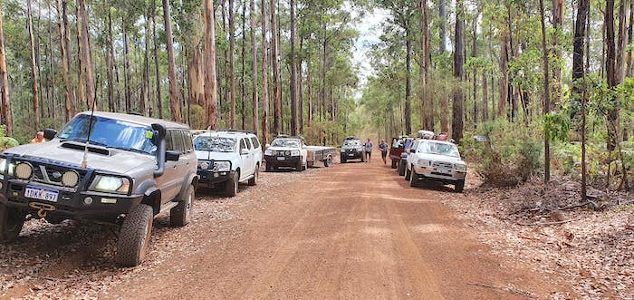 Ten vehicles left Harvey and headed to Brunswick Junction and the Brunswick Hills. We didn’t tackle any of the difficult/extreme tracks for which the area is renowned, choosing instead to head to Wellington Dam via Beela Road.