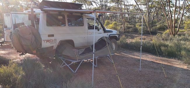 The turnoff from Great Eastern Highway is at 31°10’16.28″S 120°33’55.03″E and can be difficult to see. This track is part of the Hunt Track from Woolgangie to Yerdanie.