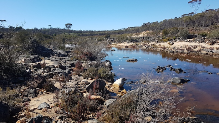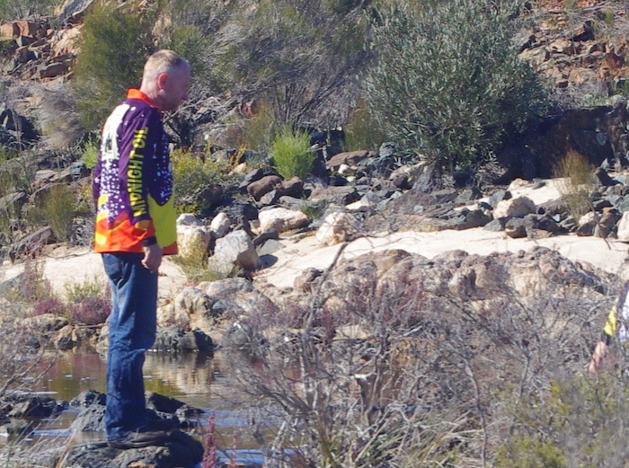 Leaving the grave, we crossed the Phillips River. Though tame at the time, inspection of the riverbed downriver from the crossing point shows that it can have a massive flow and would indeed be an obstacle to anyone wishing the travel Dunn Track from Cocanarup in the wetter months.