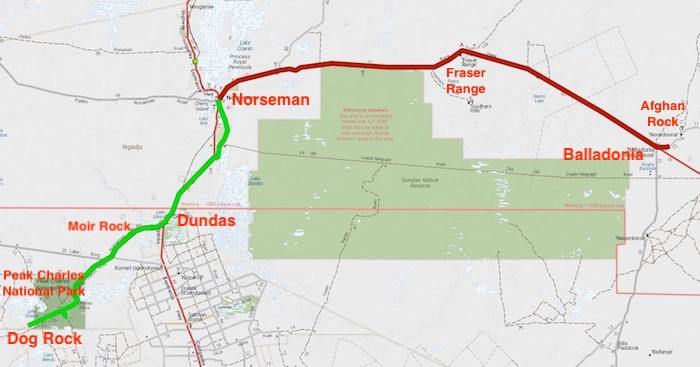 The 266 kilometre Dunn Track from Cocanarup – just out of Ravensthorpe – to Norseman was the first leg of the 10 day, 3200 kilometre Touch the Desert trip.