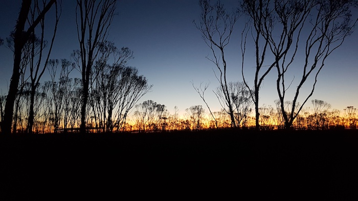 We met at the site of the long-abandoned hamlet of Wogolin. The crews rolled in, the light faded and the temperature dropped. More wood on the fire. Steve managed to clock up quite a few extra kilometres before he found the camp.