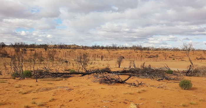 We left Streich Mound searching for a campsite. Everything on offer was burnt out. We passed the occasional patches of vegetation but no suitable campsites presented. The passage of time forced us to select a barely adequate campsite – its main attribute being a reasonable supply of wood.