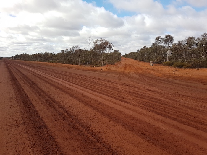 The southern portion of the Balladonia-Zanthus Track is very sandy and deeply rutted. A standard dual cab 4WD ute would have difficulties maintaining forward momentum and even staying on the track. The deep ruts took control of the steering, the dirt was scraping the underbody and driving safely was a challenge.