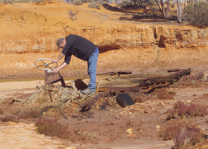 - James checks out a wrecked truck in Ponton Creek.