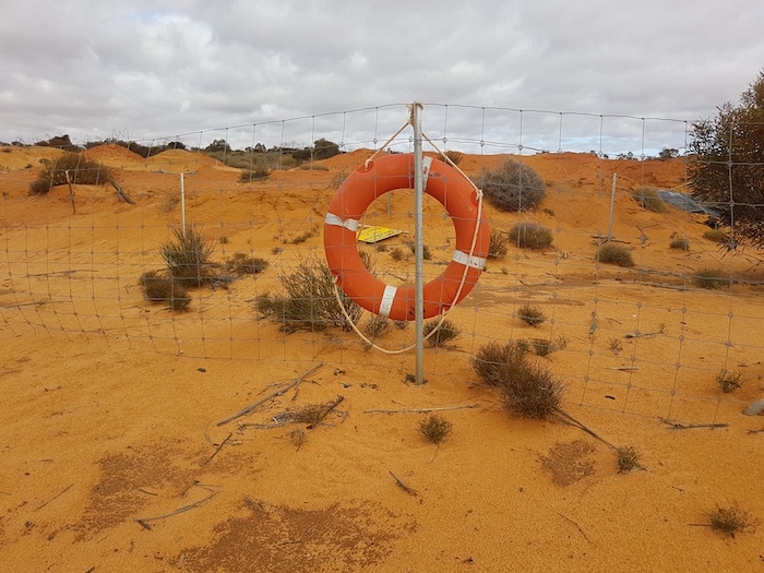 Vimy’s camp did not appear to be in operation and a locked gate across the track 22 kilometres north east added weight to that assumption. The arrogance of placing a gate across a public road with no advance warning is breathtaking. With only enough fuel to get to Laverton we had no option but to proceed forward. We couldn’t find the combination to the lock (we didn’t try the phone number reversed) and we didn’t want to interfere with the gate so Mushy found a way around it. Eight vehicles later it was a defined track.