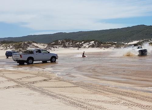 We were greeted by DPaW Rangers at Yeagarup wanting payment to enter the National Park. In exchange for which we got a bag of goodies designed to help ‘keep Australia beautiful’. We aired down and headed to the dunes.