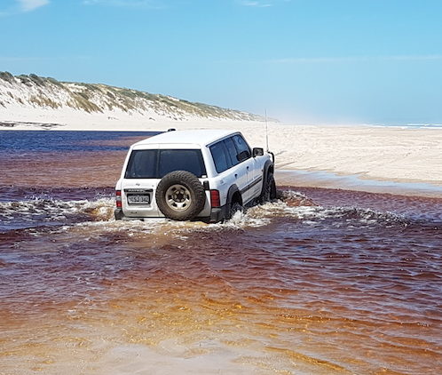 - Nick and Carrie in ‘their’ GU Wagon on the track to Yeagarup Beach.