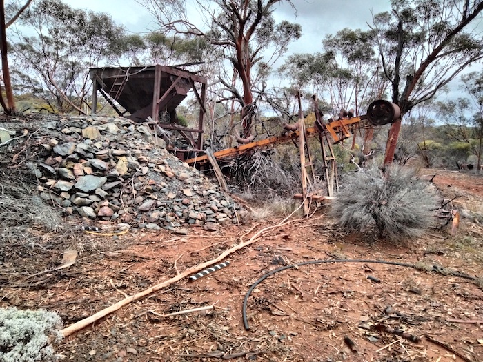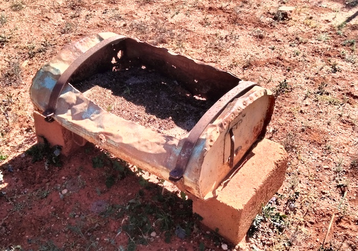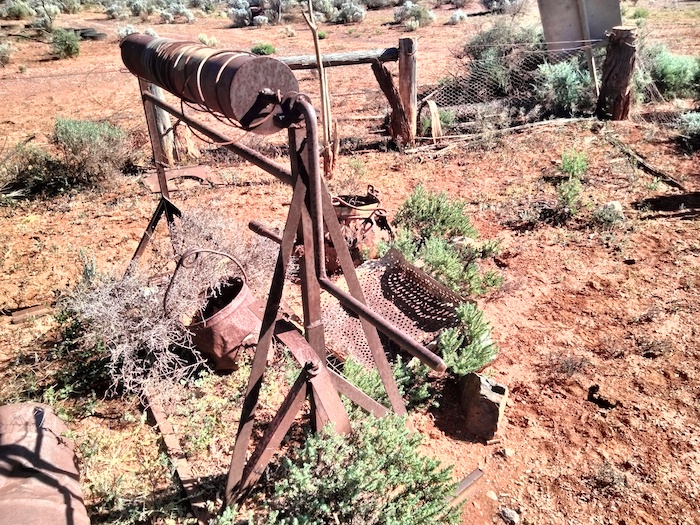 We moved on south-west. More yards and more confusion and uncertainty. We tried the track continuing south-west without success. I decided to head back to the yards, from which point we drove due west to Monita Tank (named as Monta Tank on some maps). This is an abandoned outcamp. Dongas, vehicles, and sheds in various states of decrepitude and neglect. The scale of the operation was substantial and indicated that the track from here to Balladonia would be easy to follow.