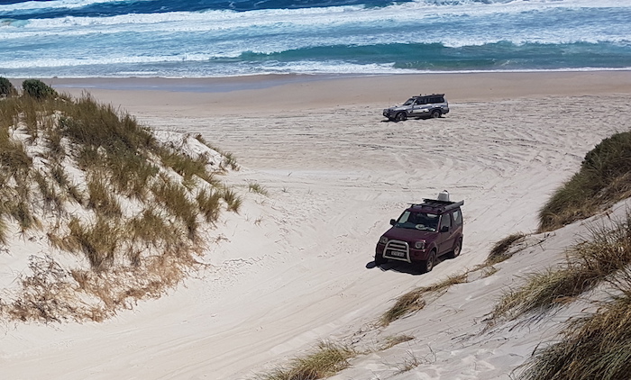 Getting to the beach was a challenge for those in the little Suzukis. Especially on one particular section of the bush track where the offset moguls are quite deep! In addition, the Sierras have only 75% of the track of larger vehicles such as Patrols and Landcruisers and this in itself presents a range of issues.
