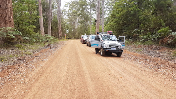 - Kim’s Patrol and John’s Tucson near the top of the descent down Yeagarup Hill.