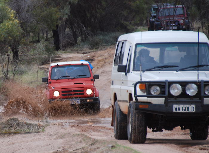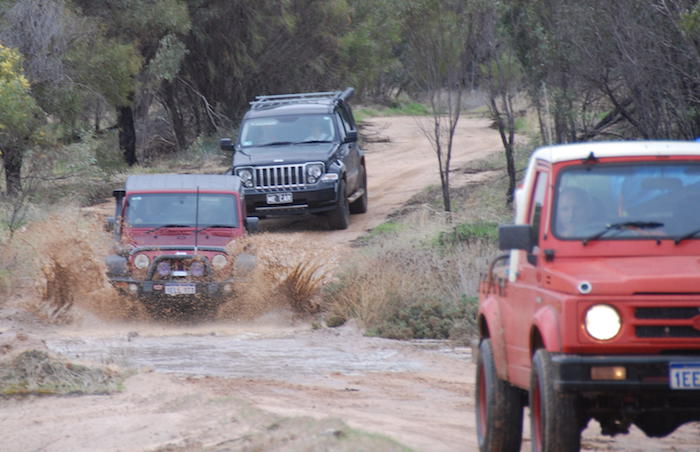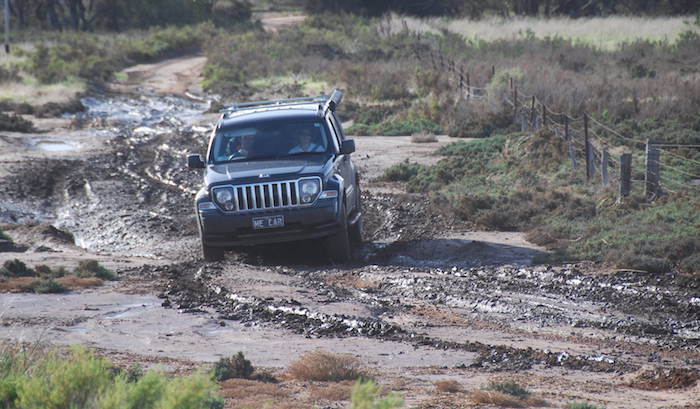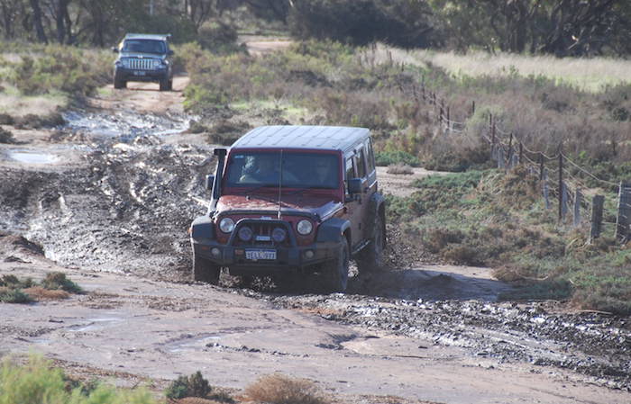 - Nick negotiates the mud in his Jeep.