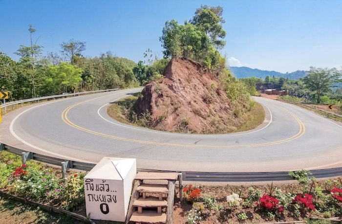 - An amazing piece of road engineering switches back on itself to form the shape of the numeral 9. See this on Route 2113, Na Haeo, Loei Province.