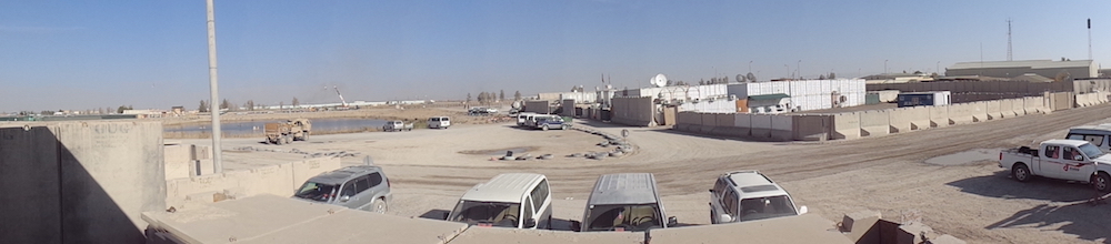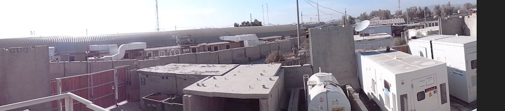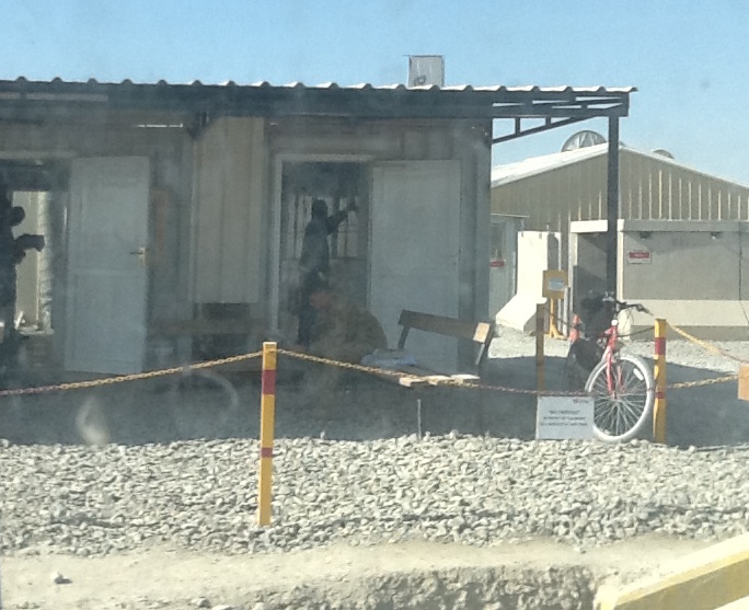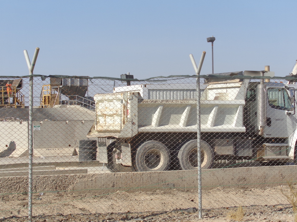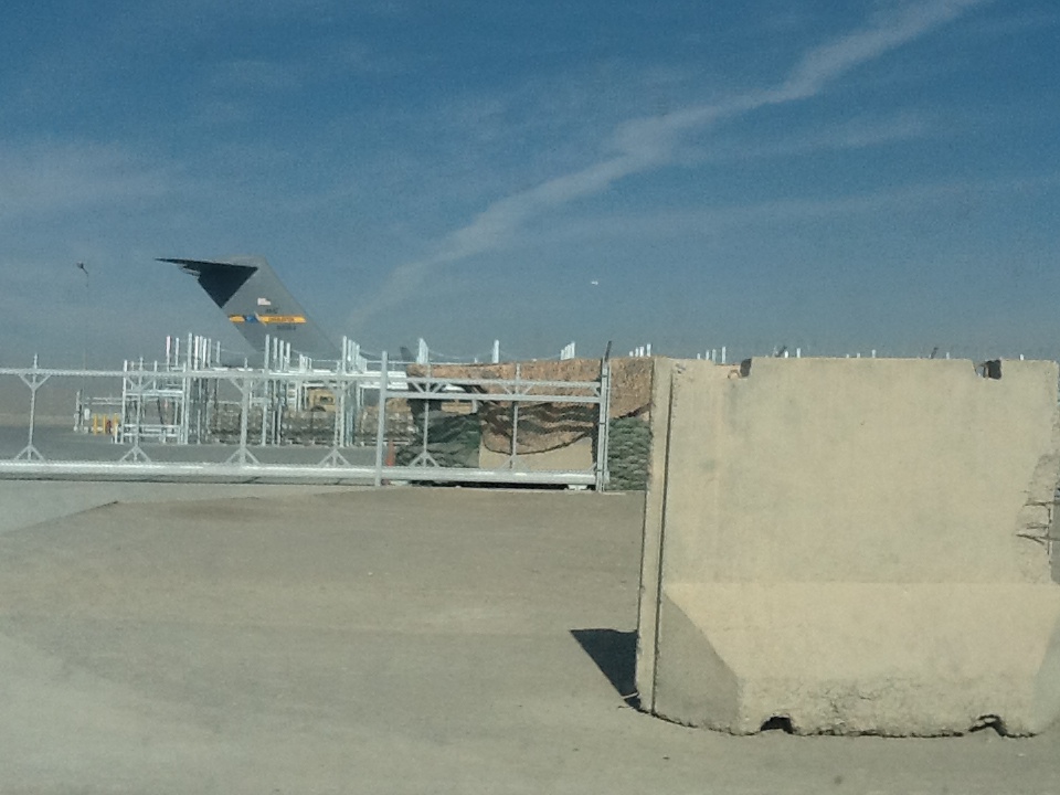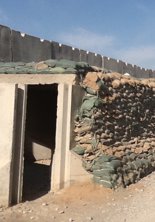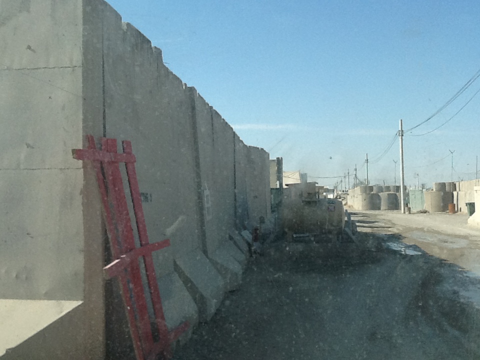 The place is built from pre-made concrete panels and blocks. And 40’ containers. Backed up by concrete. There is so much concrete needed that there are five concrete batching plants operating on KAF.