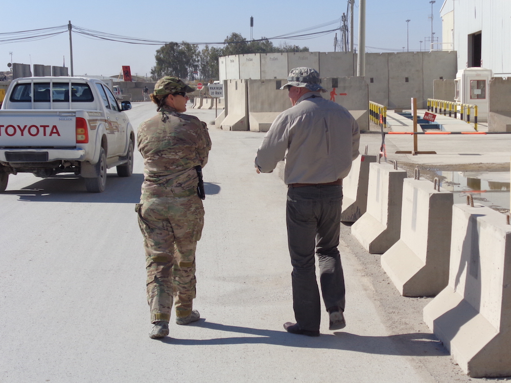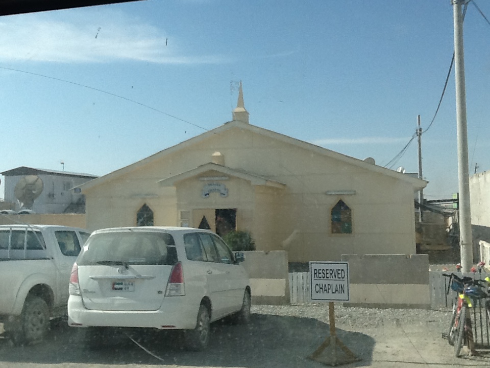 We flew Perth to Singapore and boarded the very new A380. What a magnificent aircraft. We had a 14 hour layover at Dubai and had to negotiate ‘permission to join the check-in queue’ at the contractor airline check in. A staff member was working her way along the queue checking entry permits to the war zone. We didn’t have one! But we did have a letter of authorisation from a three star US General – and that was acceptable.