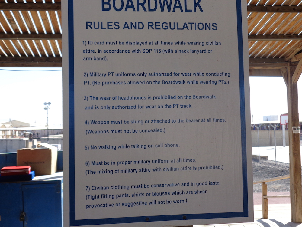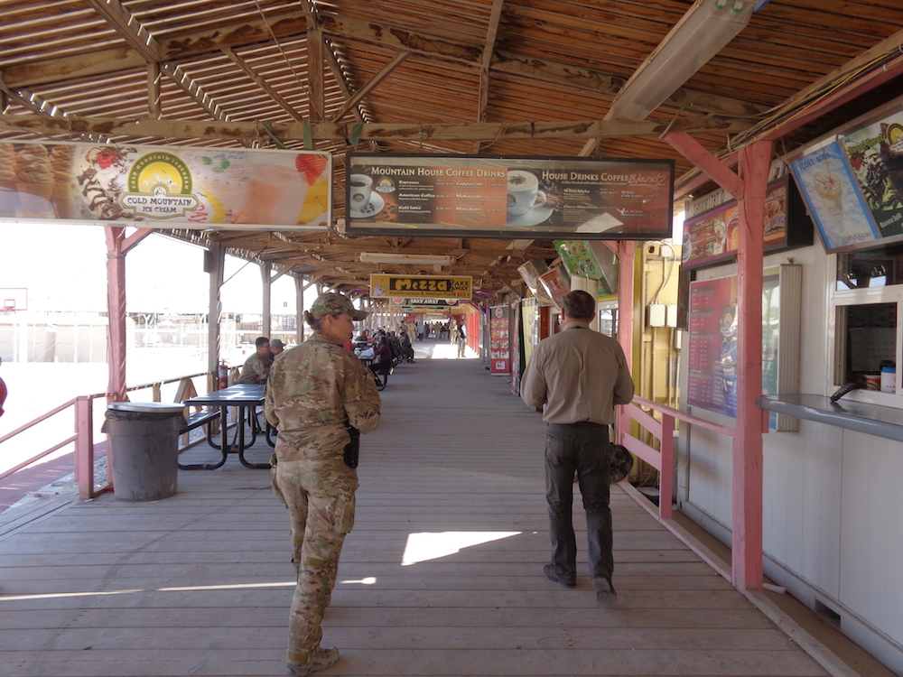KAF must rate as one of the most bizarre wartime creations in history, particularly The Boardwalk. Here one could access ice cream, KFC, TGIFs, skateboard tracks, a soccer pitch, a running track, and lots of deep fried food in the middle of a barren, war torn landscape. Far from home but not far from the comforts of home.