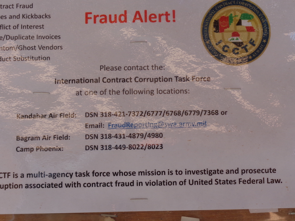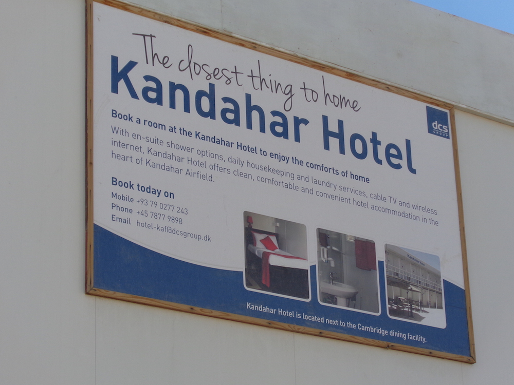 We checked in at the Hotel Kandahar – steel reinforced 40’ containers sectioned into rooms. With the admonishment to not proceed anywhere unescorted we paid our US$200 per night. Rocket attacks at no extra cost.