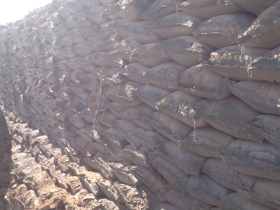 - Sandbags outside bunker.