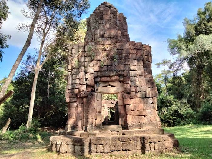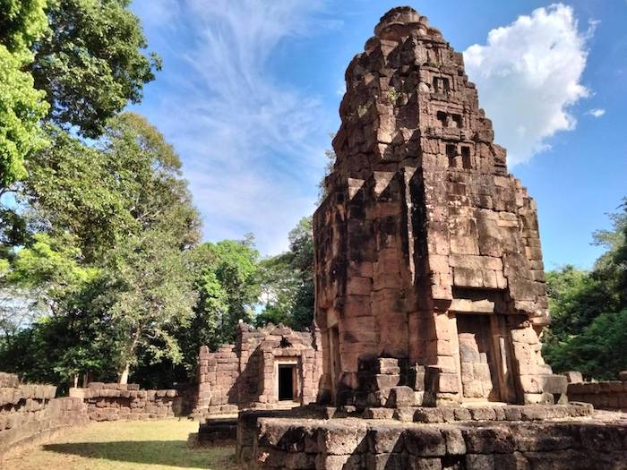 Further removed from the main tower is  the remains of a square building where a lintel from Prei Kmeng (pre-Khmer) times was found.