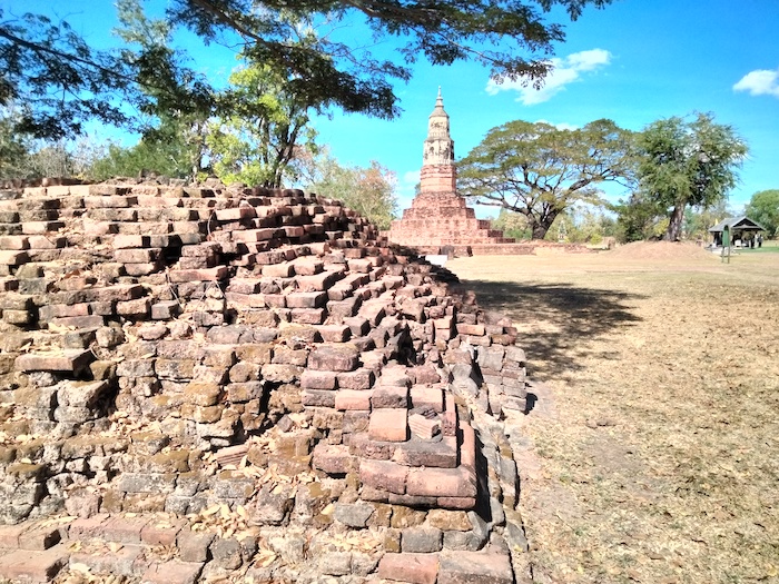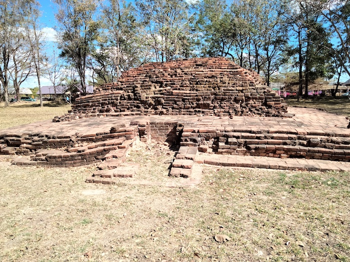 Phrathat Yaku is an octagonal-shaped chedi, made of bricks and constructed across three periods: