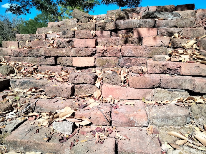 The pedestal was constructed in a redented (saw tooth) square shape, with staircases at the four cardinal directions and decorated with stucco, built during the Dvaravati period.