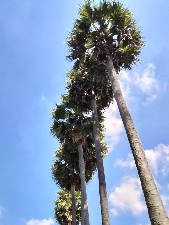 - Magnificent palm trees shadow the Prasat.