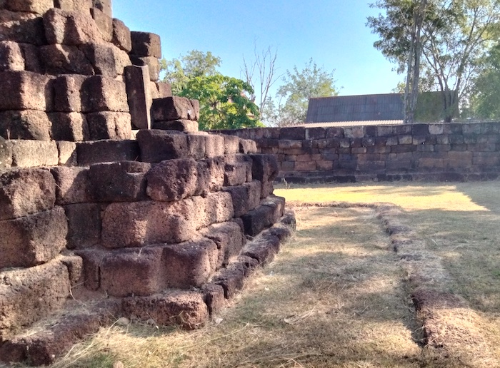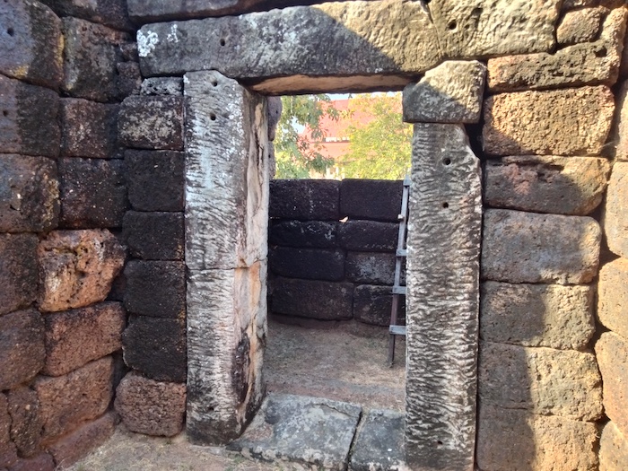 In Khmer style it is enclosed by a laterite wall and includes a ‘library’ within the walled area.