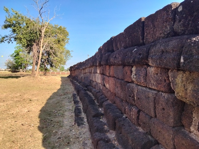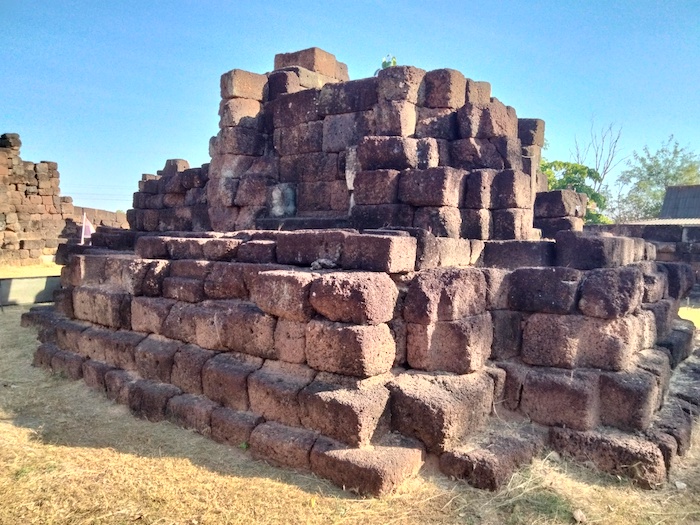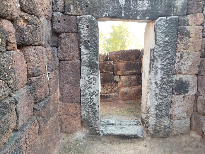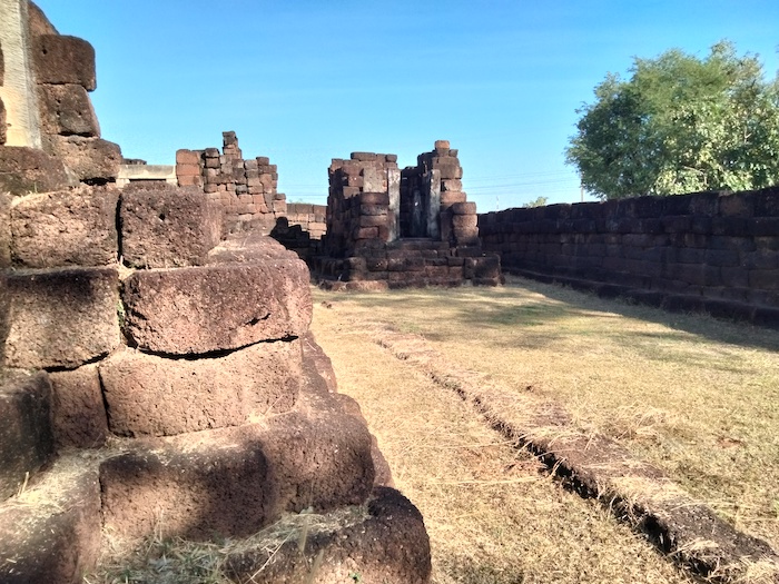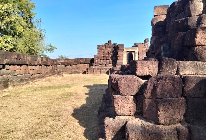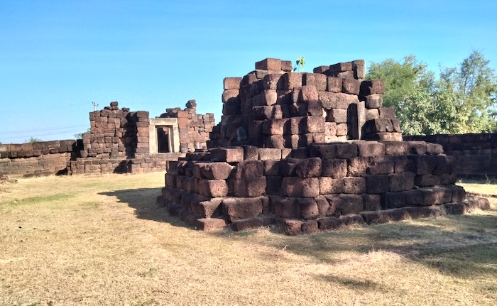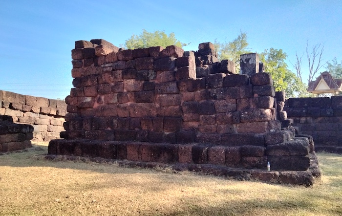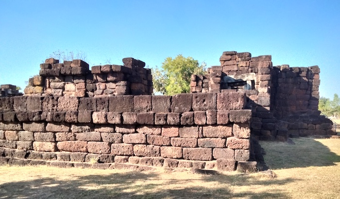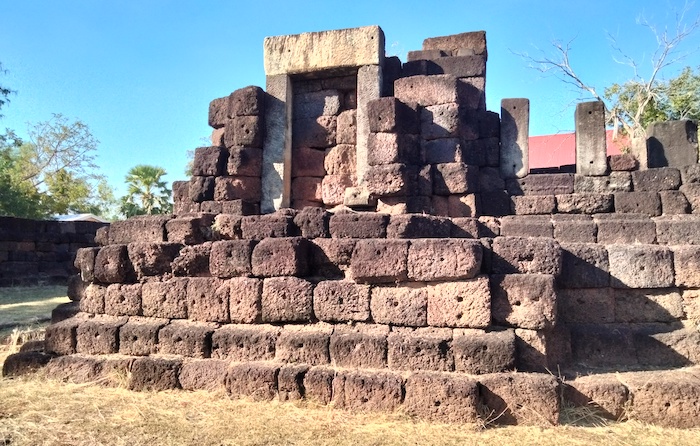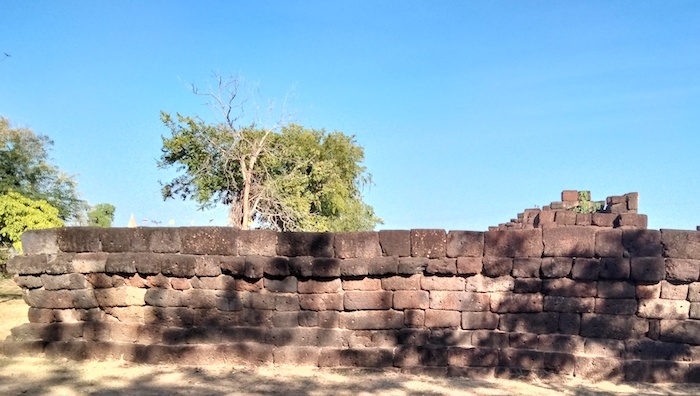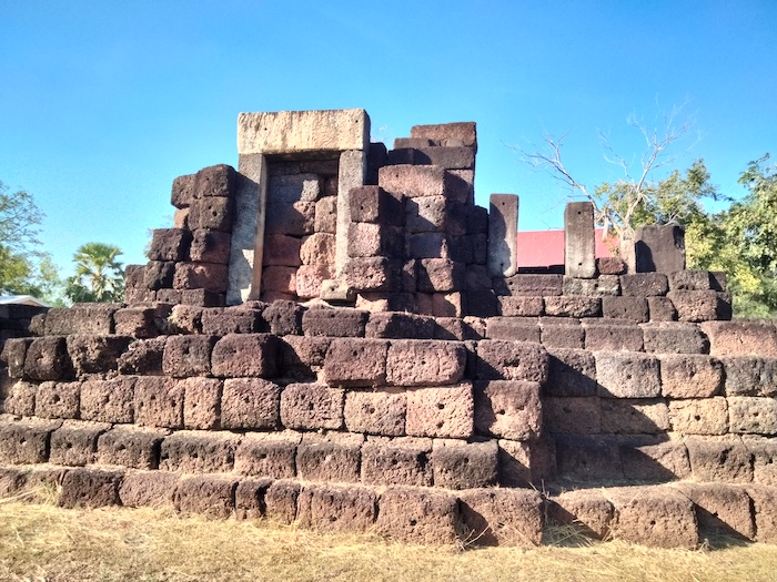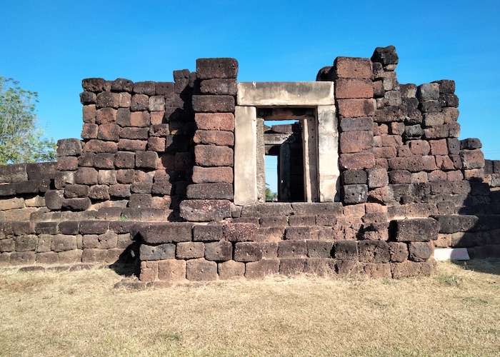Wat Ku Kaew is a late 12th/early 13th century ancient Khmer arogyasala (medical facility) with a central shrine (tower missing) and east-facing, gopura (entrance).