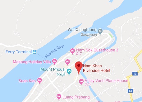 After a long walk and many questions we found our hotel – Nam Khan Riverside Hotel. This old quarter of Luang Prabang is on the peninsular formed by the Nam Khan River and the Mekong River.