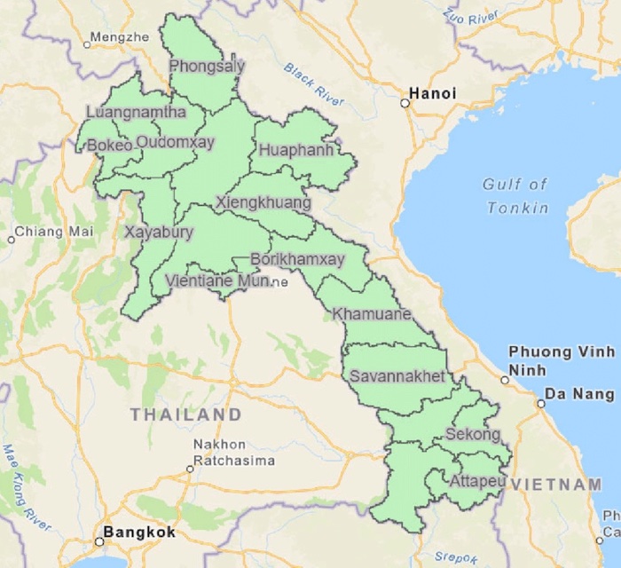 Laos is a landlocked country in South East Asia. It is bordered by Myanmar and China to the northwest, Vietnam to the east, Cambodia to the southeast, and Thailand to the west and southwest. Its capital and largest city is Vientiane.