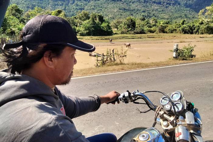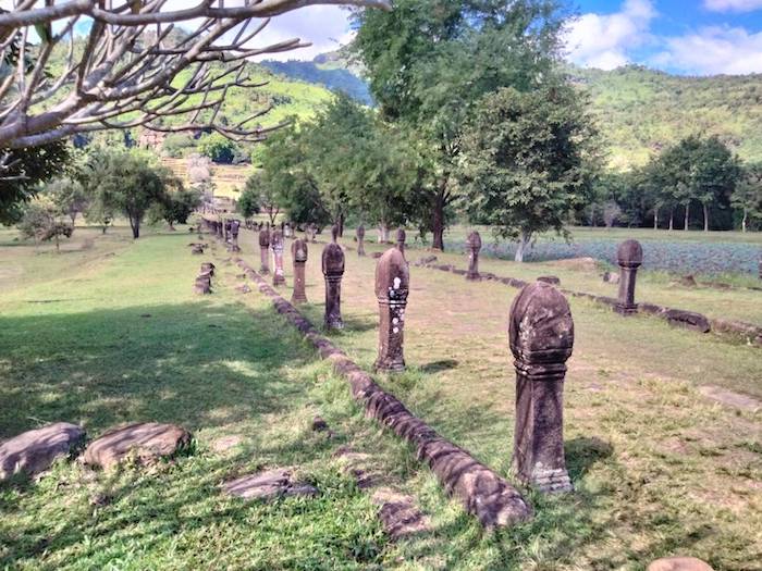 It’s a long haul to Wat Phou in a sidecar-style tuk tuk. How did we let ourselves get into this situation? No helmets, no seatbelts, no protection of any kind. Stupidity disguised as adventure.
