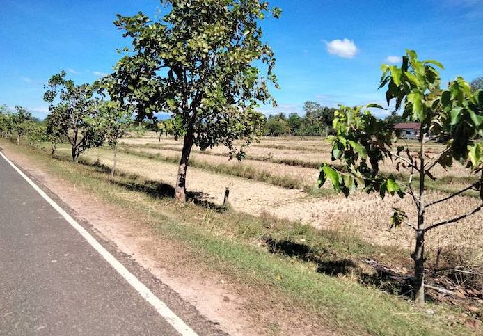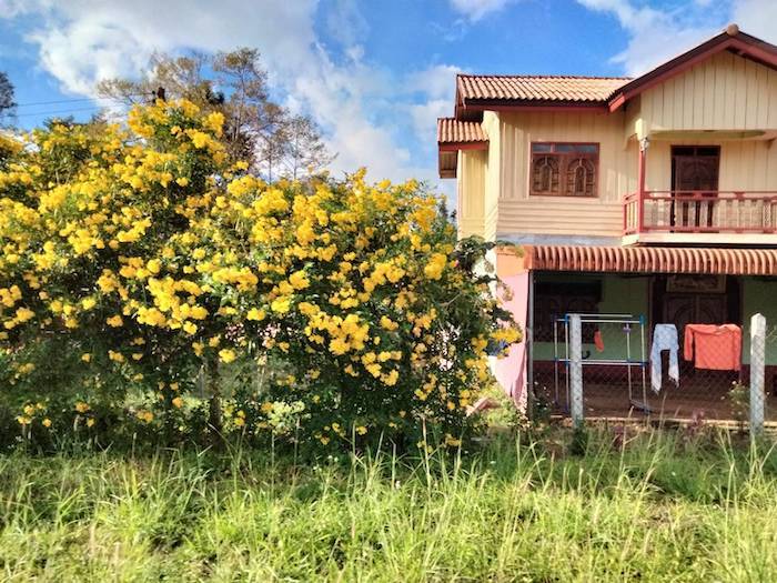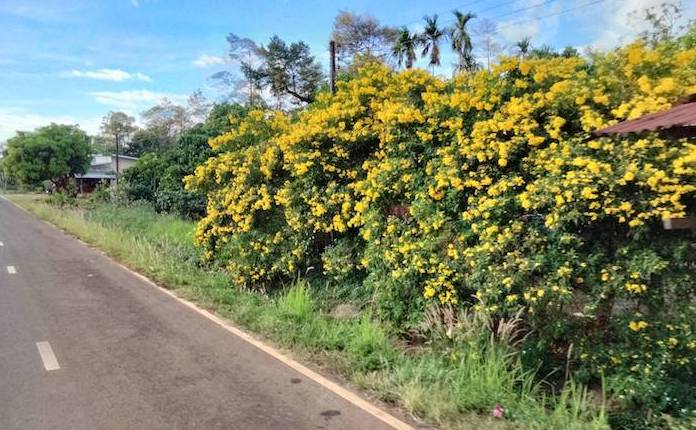 - Brilliant roadside display of yellow Ratchaphruek flowers on Route 16E, east of Pakse..