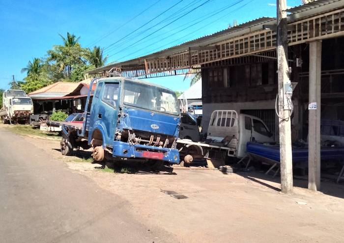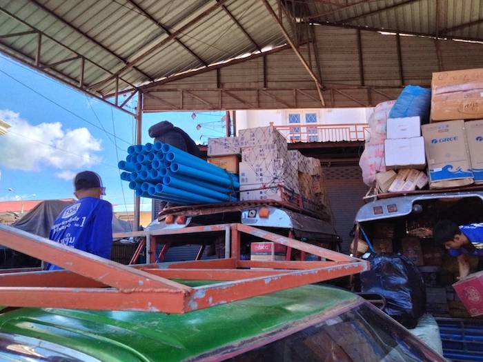 There is a large and busy market on the Thai side of the crossing. Not so in Lao People’s Democratic Republic. A long line of trucks wait to deliver their goods into Laos.