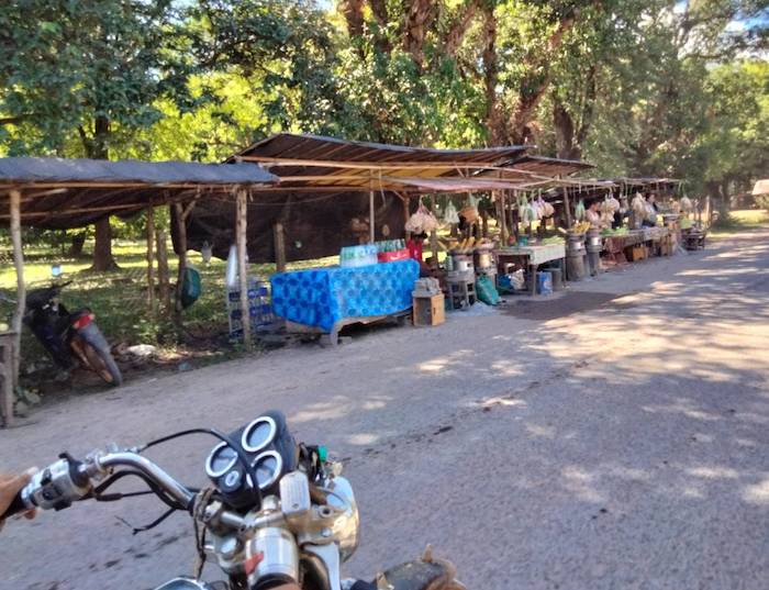 Our mini-van took us only to the Bus Station near the border crossing – a cleared-dirt area with temporary shelters. Apart from walking the last 400m to the crossing with our bags, the only other option was conveniently available motorcycles – at 20% of the rate for the entire 40+ kilometre journey from Pakse. Happy to contribute to the local economy and a good way to get rid of worthless Kip.